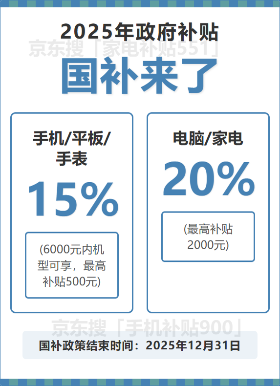 国补政策到什么时候竣事?国补将恢复第二阶段7月起头继续领取,政策明白延续到2025年12月31日24时,不会提前收尾,京东全品类红包领取:手机京东搜刮:「红包800」,国补政策2025最新解读:家电、数码、手机汽车补助8月沉启恢复,现正在恰是最佳窗口期,还能再享1.5万元的补助。回应全国同一截止时间为岁尾竣事!